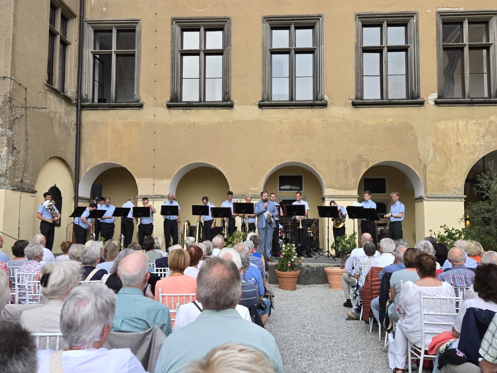 Vor der eindrucksvollen Kulisse des Schlosses bot das Heeresmusikkorps ein abwechslungsreiches Programm, das von klassischen Märschen über sinfonische Blasmusik bis hin zu modernen Arrangements reichte. Das Publikum zeigte sich begeistert und würdigte die musikalische Darbietung mit langanhaltendem Applaus.